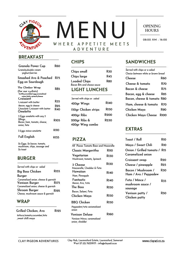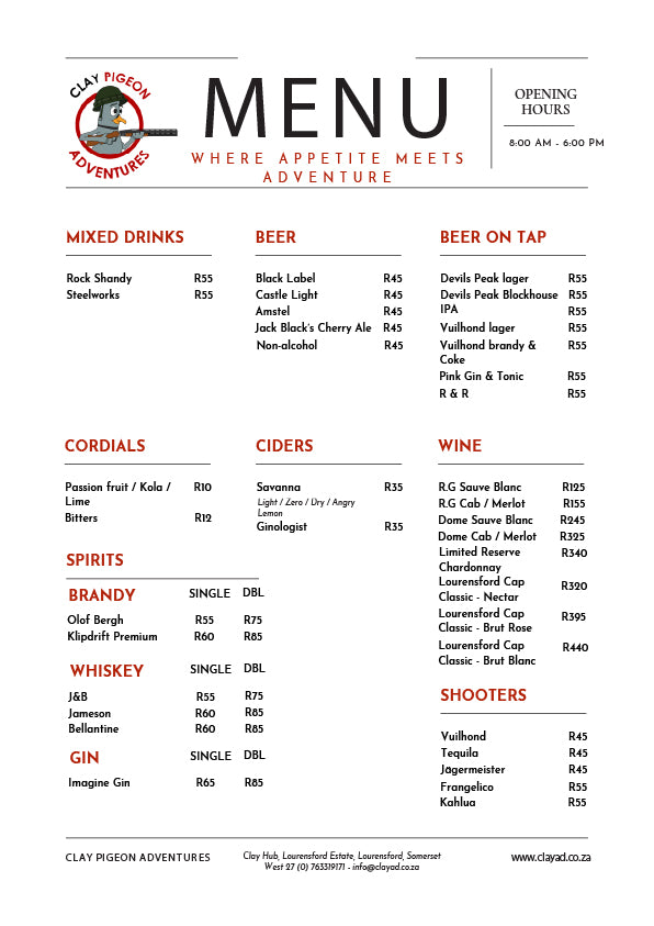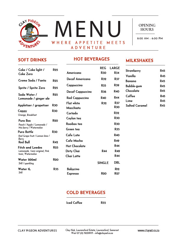 Swing by the Clay Hub for refreshing drinks and great food. It’s the perfect place to bring the family, socialise with friends, and unwind before or after your activities.